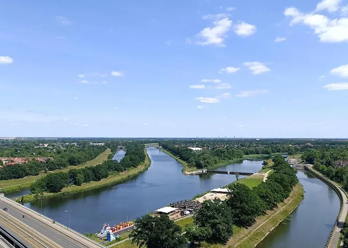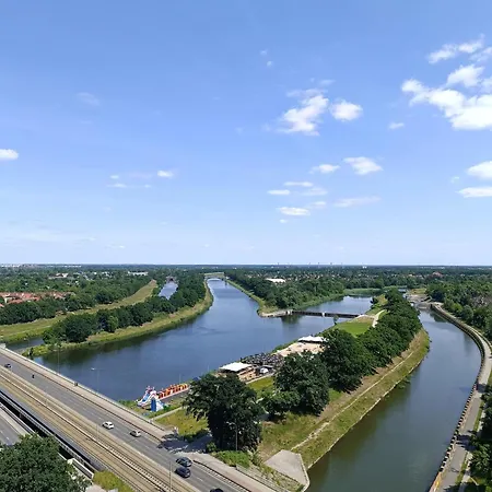 A 45 m²-es 17Th Floor With River View Panorama Wrocław apartman a Belváros körzetben található, és egy 2 km-es távolságra fekszik olyan kulturális látnivalóktól, mint a WRO művészeti központ.